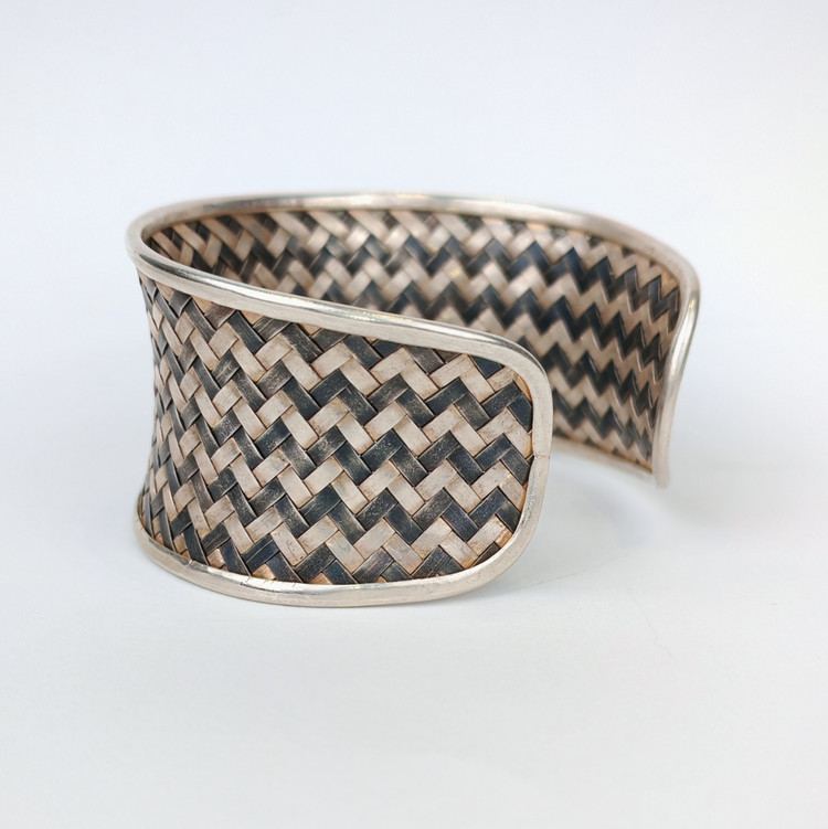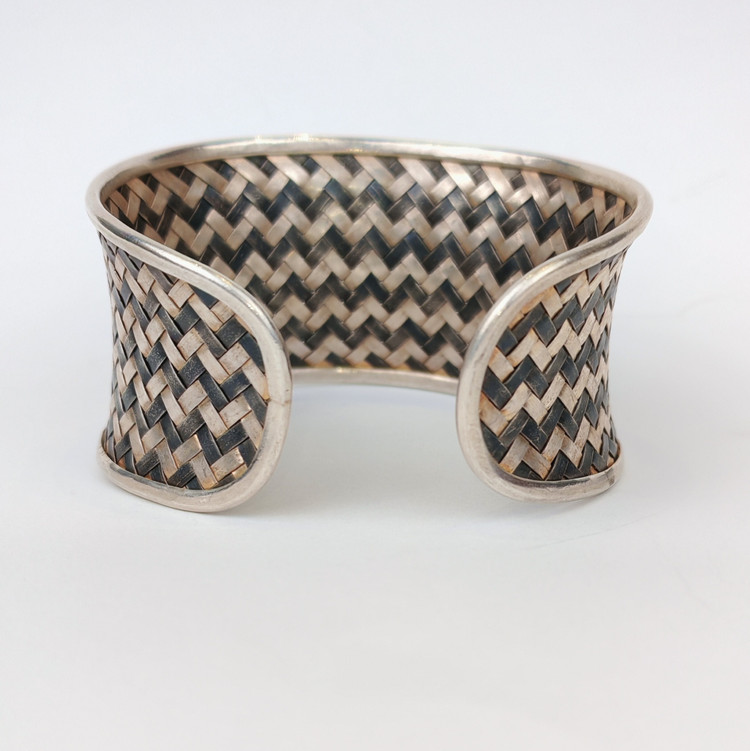 بنگل حصیر بافت نقره 925 دست ساز وارداتی: 45/3 گرم