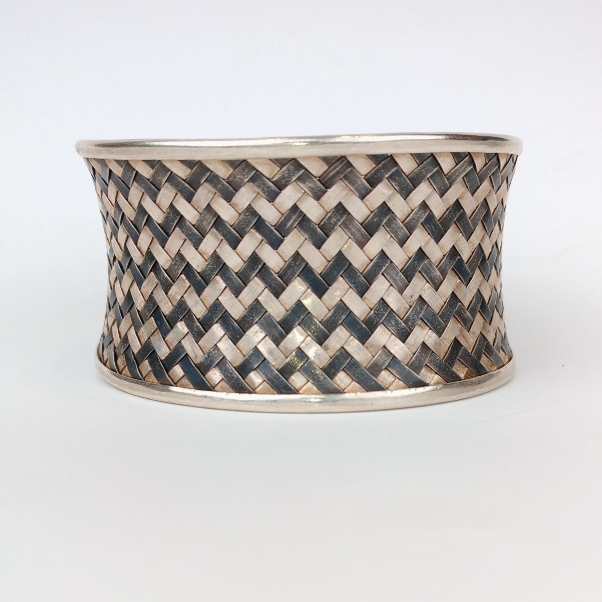 بنگل حصیر بافت نقره 925 دست ساز وارداتی: 45/3 گرم